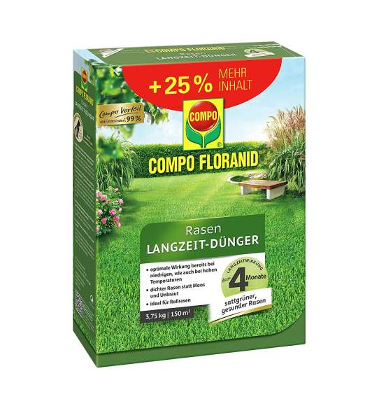 Langzeit-Rasendünger für höchste Rasen-Ansprüche. Sorgt 4 Monate lang für einen sattgrünen Rasen, der Moos und Unkraut trotzt. Die einzigartige Langzeit-Technologie versorgt den Rasen vom ersten Tag an bedarfsgerecht 4 Monate lang kontinuierlich mit Stickstoff - ohne Stoßwachstum und Verbrennungsgefahr. Das Feingranulat enthält alle Nährstoffe in jedem Korn und fällt tief in die Grasnarbe ein. Der Dünger kann so einfach und gleichmäßig ausgebracht werden. Streuwagen geeignet.