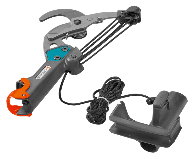 Die combisystem-Bypass-Baumschere von GARDENA ist Dir eine große Hilfe beim einfachen Entfernen von frischen Ästen. Im Einsatz bietet sie 3-mal mehr Schneidkraft, die durch die 5-fache Rollenübersetzung und doppelte Hebelwirkung erzielt wird. Das sorgt für eine große Kraftersparnis, erleichtert Dir die Baumpflege und verringert Ermüdungserscheinungen. Die gehärteten Messer schneiden nach dem Bypass-Schneidprinzip. Dank ihrer Antihaftbeschichtung vollziehst Du einen sauberen, glatten sowie pflanzenschonenden Schnitt von Ästen bis 35 mm Durchmesser. Die Bedienung der Baumschere ist durch den verstellbaren, ergonomischen D-Griff kraftvoll und komfortabel. Der Griff hat eine Seilaufwicklung mit Fixierung für die Seilenden an beiden Seiten, um ein Verknoten während der Arbeit und bei der Lagerung zu verhindern. Das reißfeste Zugseil ist 4,7 m lang. Die praktische Asteinhängung unterstützt Dich beim Arbeiten in Baumkronen, da sie ein bequemes Ziehen am Zugseil ohne großen Kraftaufwand ermöglicht. Die Bypass-Baumschere gehört zum GARDENA combisystem. Verwende sie entweder als Handschere oder kombiniere sie mit einem combisystem-Stiel wie dem separat erhältlichen Teleskopstiel. Durch die wackelfreie Verbindung ist sicheres Schneiden in großen Höhen garantiert. Auf das Qualitätsprodukt Made in Germany gewährleistet GARDENA 25 Jahre Herstellergarantie. Deiner Vision mit jedem Schnitt näher. Leicht handhabbar, effektiv und langlebig: Schneidgeräte für kreative Gärtner.