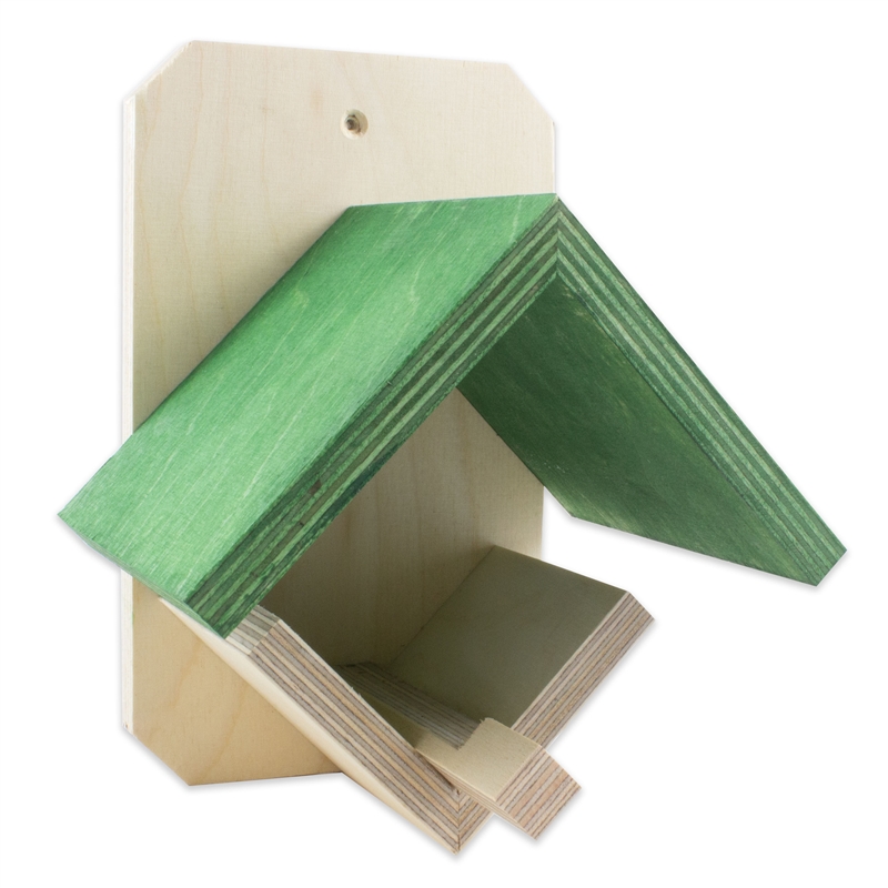 Dieses kleine Futterhaus ist speziell für die Fütterung von Pfiffikus Vogel-Bistro entwickelt worden. Durch den kleinen Keil, der vorne im Futterhaus eingearbeitet ist, fällt der Tiegel Vogel-Bistro nicht heraus, wenn die Wildvögel daran picken.