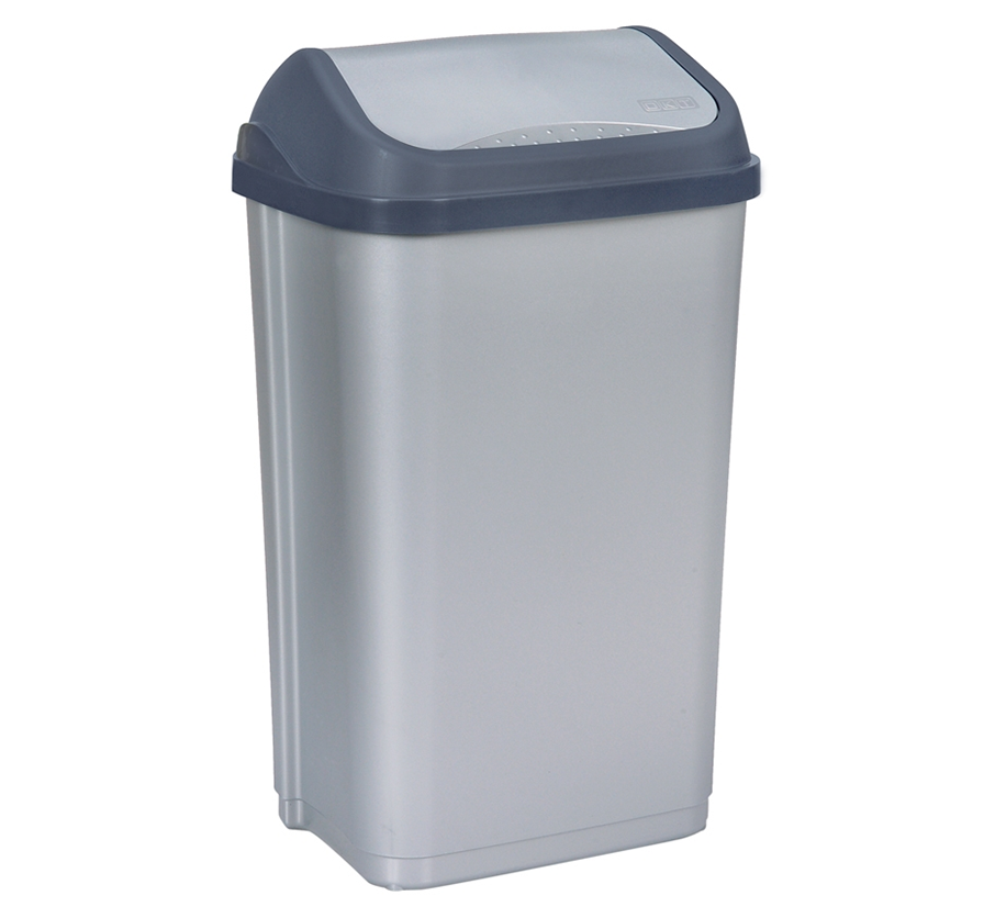 Produktinformationen "keeeper Abfallbehälter Swantje, 50 Liter, silber-anthrazit mit Schwingdeckel, Größe: 38,5 x 29 x 66cm"